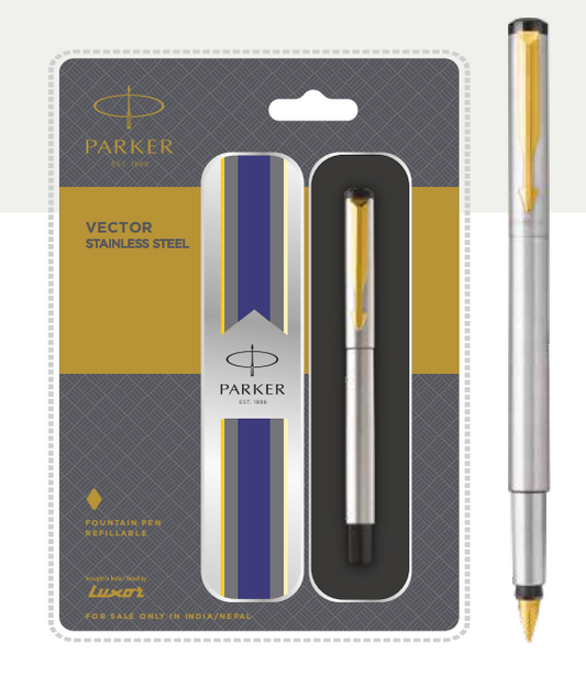 PARKER VECTOR STAINLESS FOUNTAIN PEN WITH GOLD TRIM