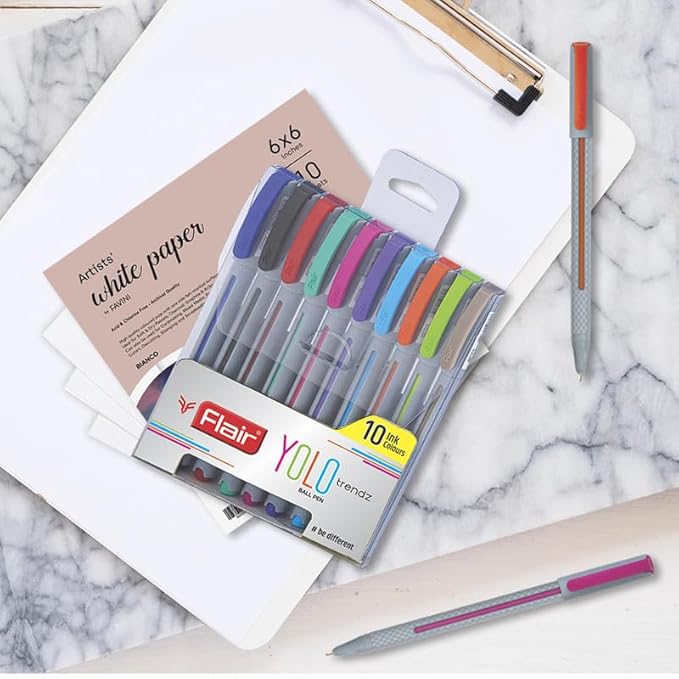 Bring a splash of style to your writing with the Flair YOLO Trendz Ball Pen. Designed for smooth performance and a trendy look, these pens are perfect for school, office, or personal use. The lightweight body ensures comfortable writing, while the reliable ink system delivers clear, consistent lines every time. With a vibrant and modern design, writing becomes more than just a task—it’s a statement.