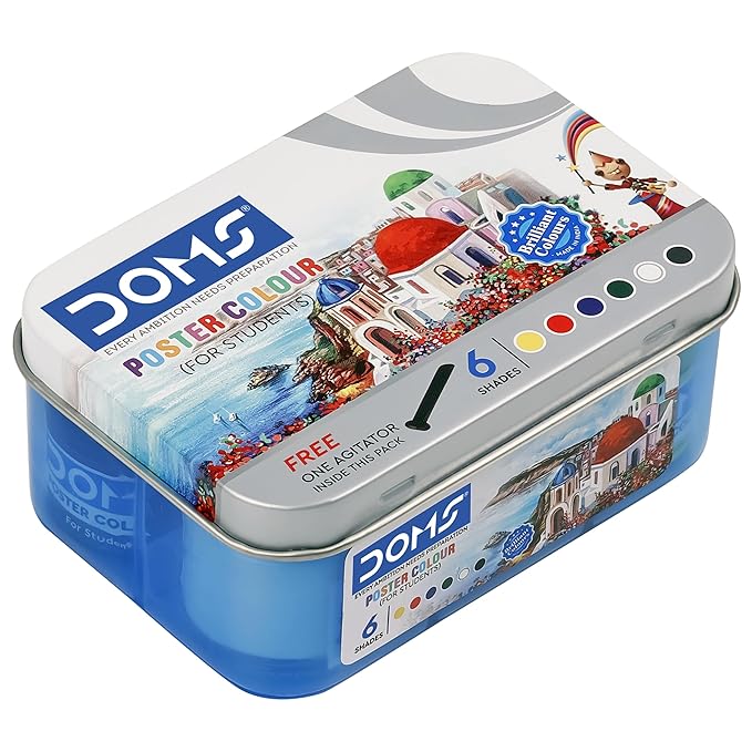 Bring your imagination to life with the Doms Poster Colours – 6 Shades. These bold and vibrant colours are perfect for school projects, craftwork, and creative painting activities.