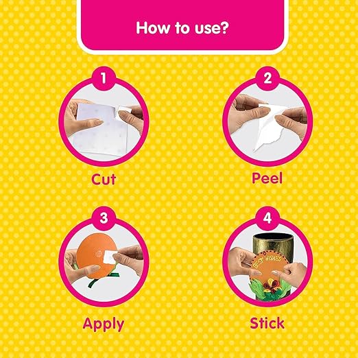 Fevicol Glue Drops are ready-to-use adhesive dots that provide a clean, hassle-free sticking experience without any mess. Perfect for quick fixes, art & craft, decoration, and DIY projects.