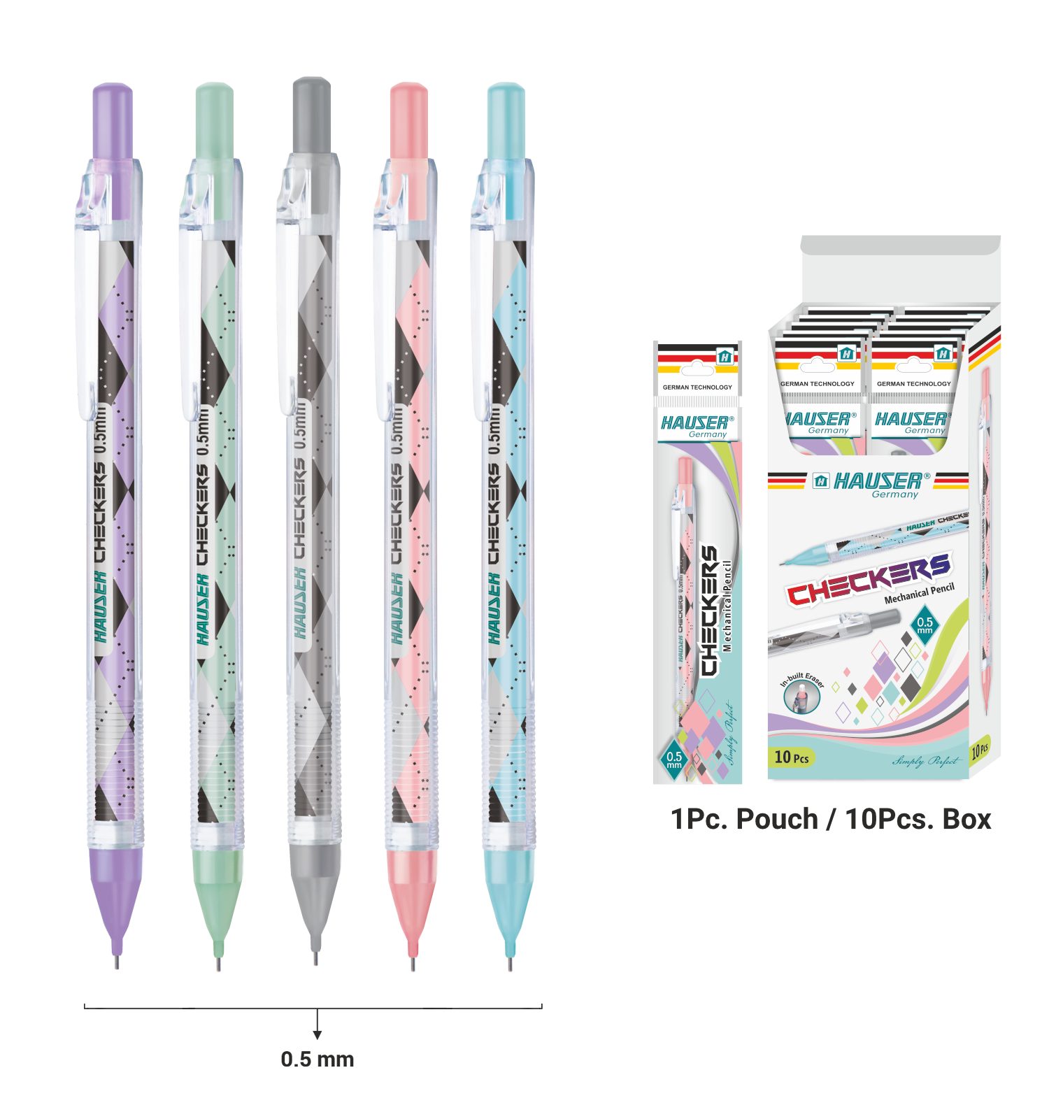 Hauser Artz Mechanical Pencil CHECKERS - 0.5mm (Pack of 10)